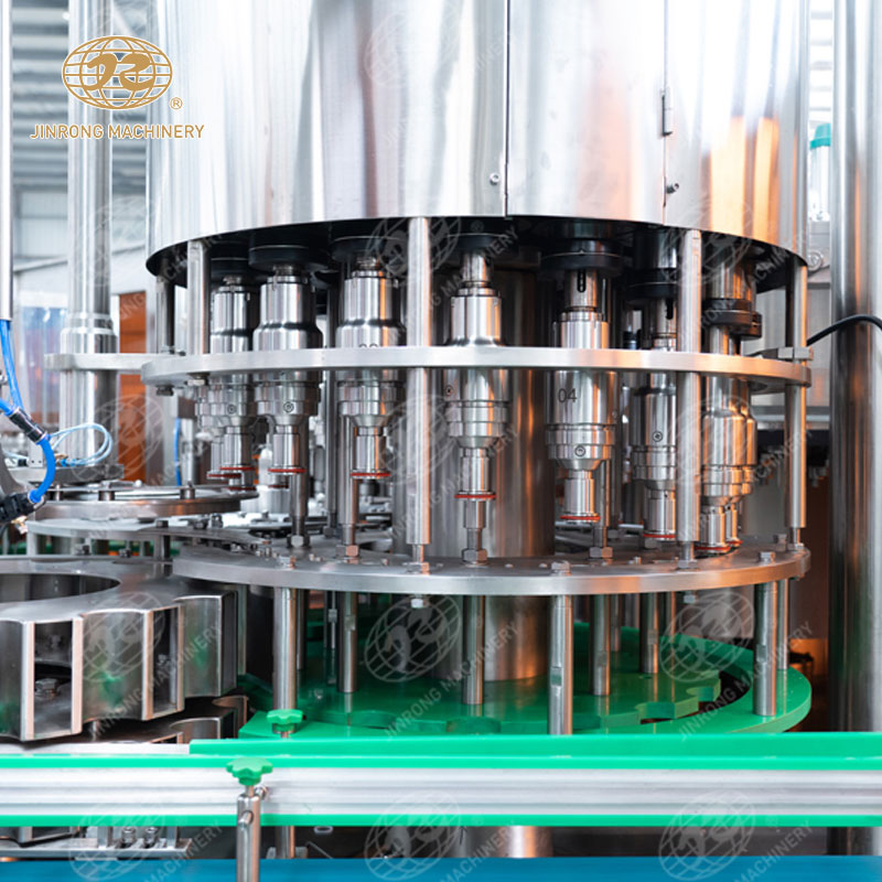 3. 灌装:在接下来的工作站,经过定量灌装设备,将碳酸饮料按照预设的容量精确地灌装入瓶子中。灌装设备通常采用重力式下料或者压力式下料,保证了灌装的准确性和稳定性。
