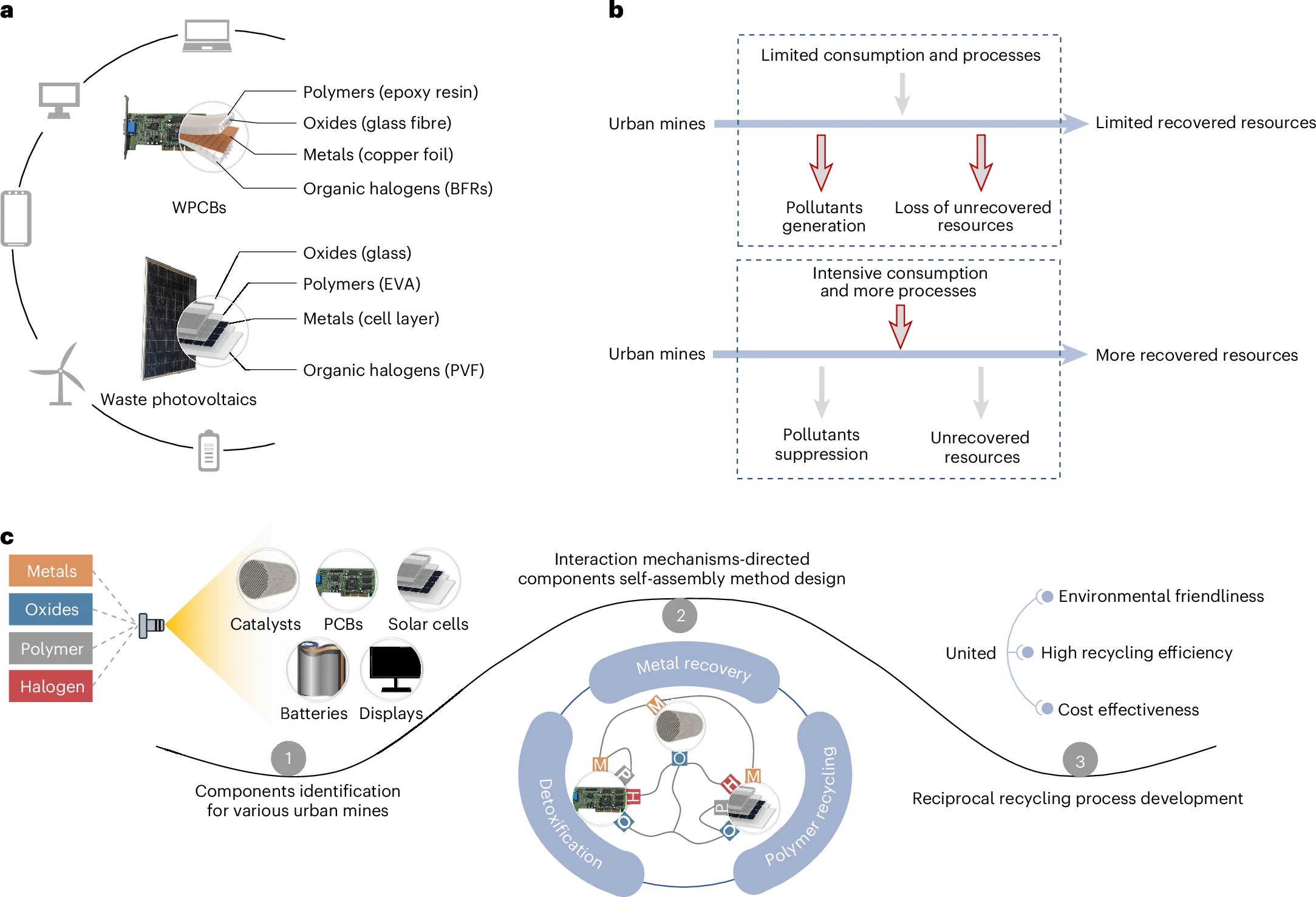 近日,yl7703永利许振明教授团队在《Nature Sustainability》在线发表了题为“Component self-assembly for reciprocal urban mining”的研究成果。该研究提出了一种城市矿产组分自组装互惠回收策略,利用其组分多样性特征实现城市矿产的可持续互惠互助回收。yl7703永利博士后宋庆明为论文第一作者,许振明教授为论文唯一通讯作者。本工作受到国家自然科学基金资助。