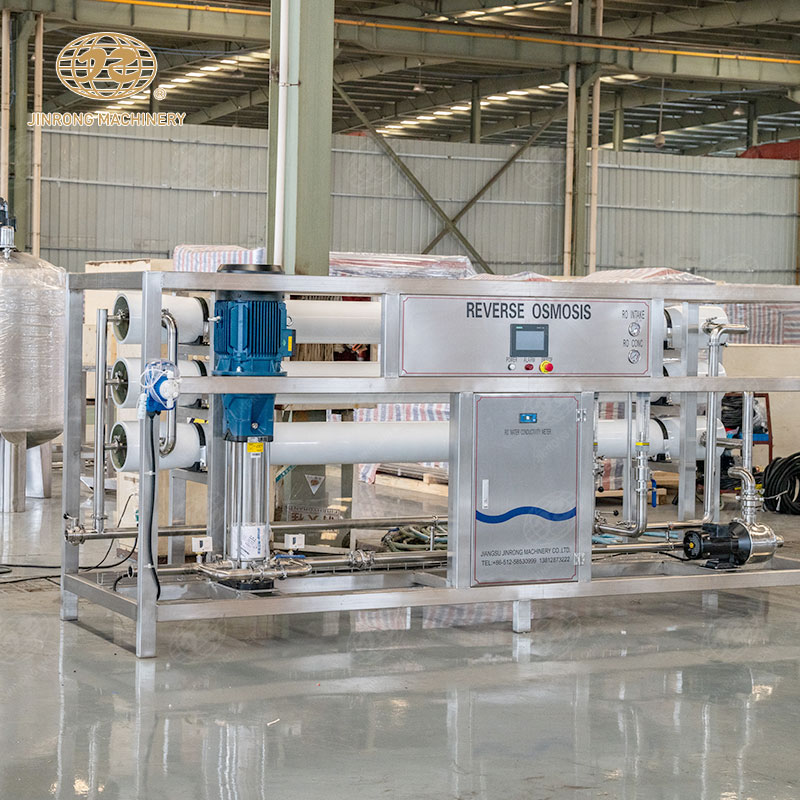 RO反渗透系统,也称为反渗透水处理系统,是一种基于膜分离技术的水处理系统。RO反渗透系统利用反渗透膜的选择性,以膜两侧静压差为动力,克服溶剂(通常是水)的渗透压,允许溶剂通过而截留离子物质,对液体混合物进行分离。具体来说,原水在高压力的作用下通过反渗透膜,水中的溶剂由高浓度向低浓度扩散,从而达到分离、提纯、浓缩的目的。由于这个过程与自然界的渗透方向相反,因此被称为反渗透。12T/H RO反渗透系统是矿泉水灌装线中重要的一部分。