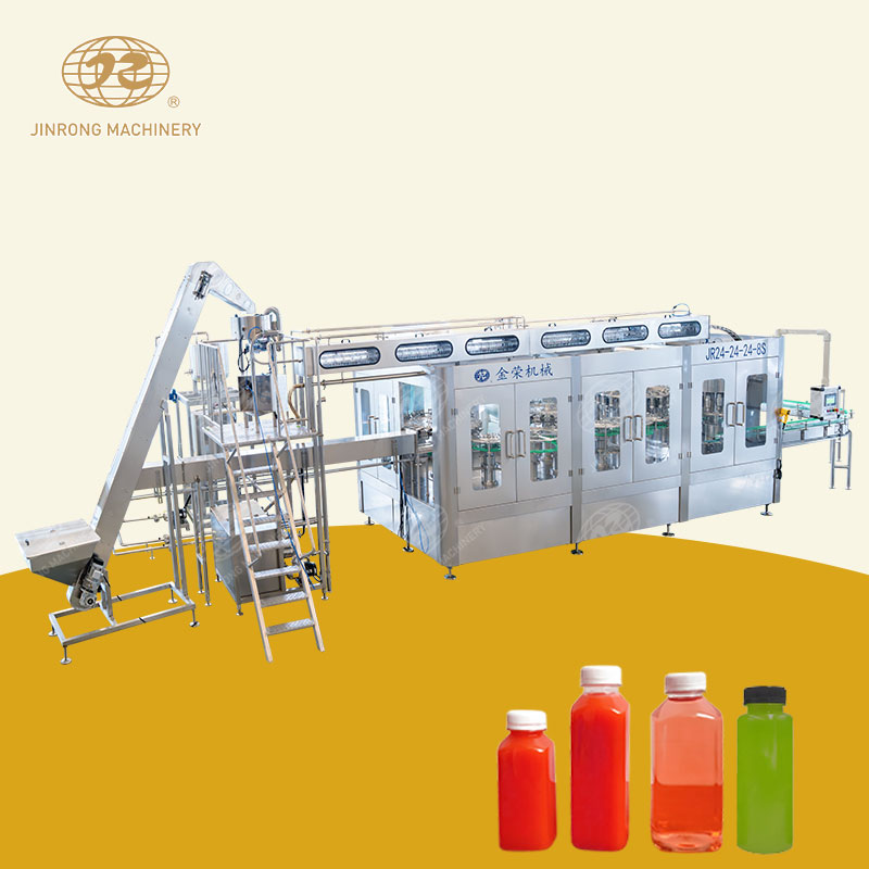 果汁/茶饮料灌装线是一种高效的自动化生产线,适用于多种液体物料的灌装,包括但不限于果汁(如橙汁、苹果汁等)、茶饮料(如红茶、绿茶、奶茶等)、以及其他类似的液体产品。这些液体物料在灌装前需要经过严格的原料准备与处理,以确保其纯净度和安全性。果汁饮料生产线通过一系列精密的设备和流程,确保产品的质量和生产效率,同时减少人为操作的错误。果汁茶饮料灌装线主要由输送系统、清洗系统、灌装系统、封口系统、检测系统等关键部分组成,每个系统都发挥着特定的作用,共同保障生产线的顺畅运行。果汁灌装线通常能够适配不同容量的塑料瓶。