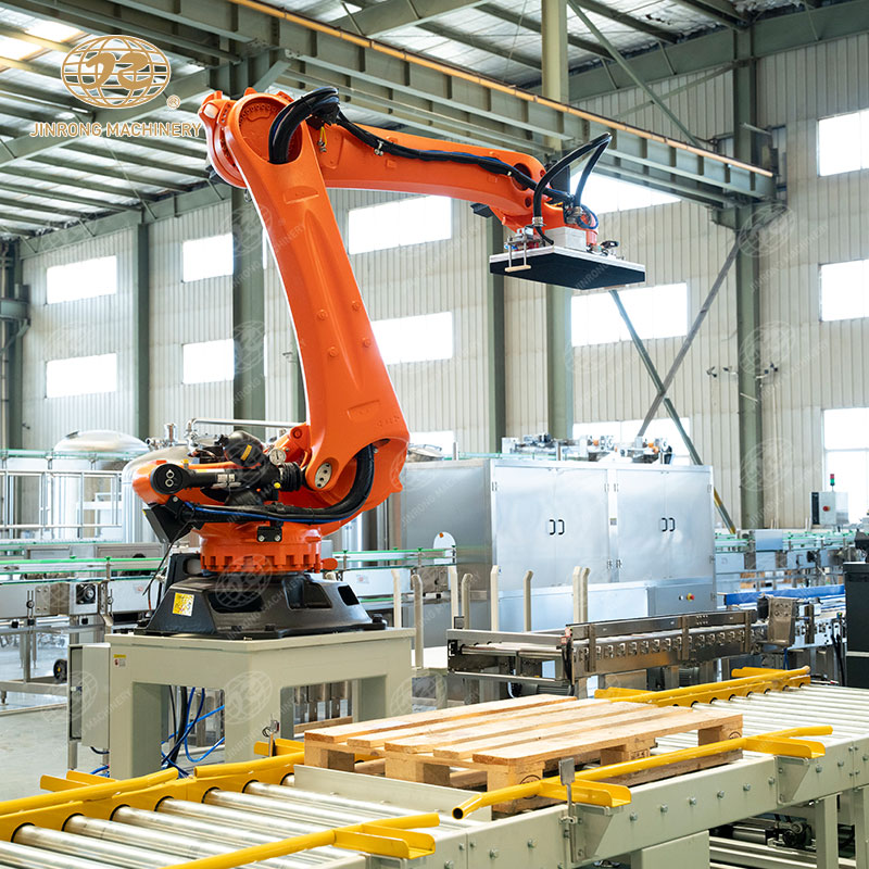 码垛机:将膜包好的易拉罐按照一定的排列方式堆码成垛,以便于叉车等搬运设备进行搬运和存储,提高物流效率。