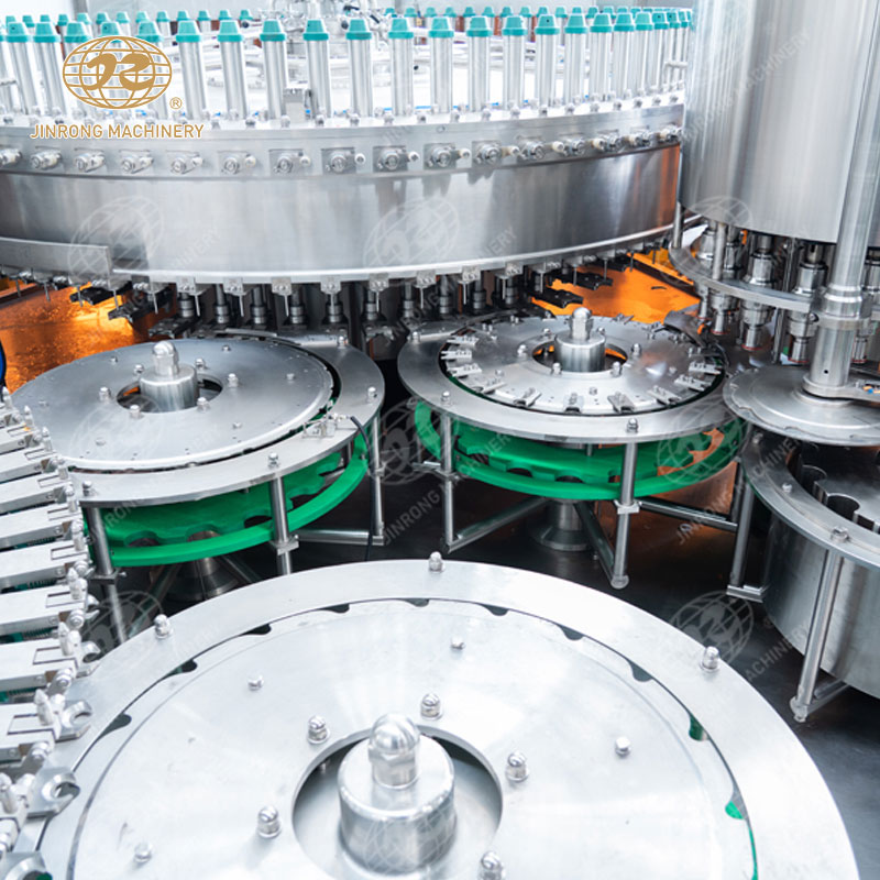 3. 灌装:在接下来的工作站,经过定量灌装设备,将碳酸饮料按照预设的容量精确地灌装入瓶子中。灌装设备通常采用重力式下料或者压力式下料,保证了灌装的准确性和稳定性。
