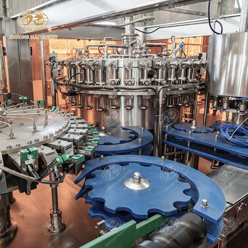 在玻璃瓶碳酸饮料生产线上,不仅仅是灌装部分,还需要其余的自动化设备进行配合生产,才能完成二氧化碳气体饮料的制造。主要采用纯净水用于配料后的口感更好。