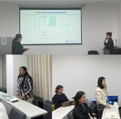 交流环节,与会师生围绕耦合半导体颗粒缺陷调控、高效双助催化剂纳米颗粒原位共负载、分子筛中空双壳层一体化颗粒催化材料制备方法等方面展开热烈讨论。