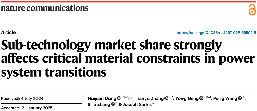 环院智慧|耿涌教授和董会娟副教授团队Nat. Commun.发文:低碳发电子技术市场份额显著影响电力系统转型中的关键矿产资源约束