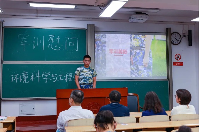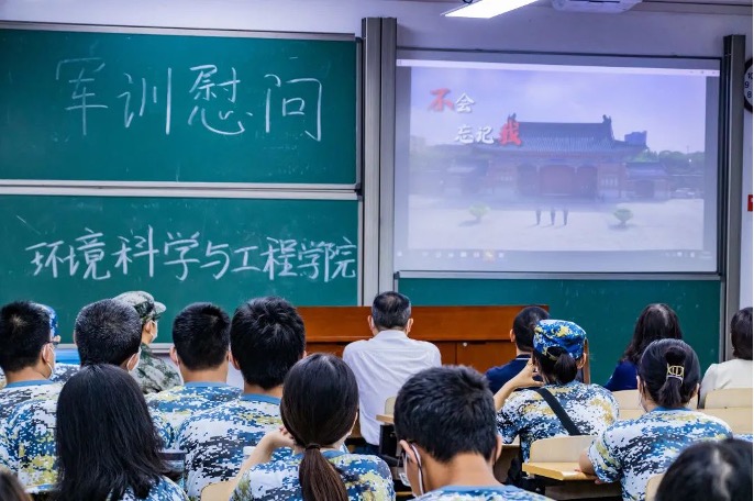 随后,环境学院院长耿涌为同学们寄语。他代表学院表达了对参训学生的关心,赞扬了同学们在军训中所展现出的优良品质和良好面貌。