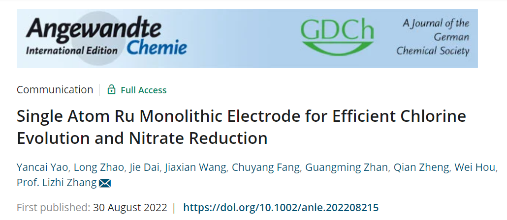 近日,yl7703永利张礼知教授团队在Angew. Chem.在线发表了研究论文Single Atom Ru Monolithic Electrode for Efficient Chlorine Evolution and Nitrate Reduction,yl7703永利长聘教轨助理教授么艳彩为该论文第一作者,特聘教授张礼知为通讯作者。