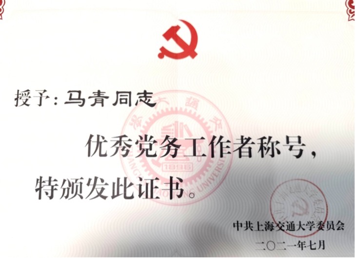 2021年,支部党员参与完成的“师风带动学风,‘学、思、行、悟’四维度打造‘大思政’育人体系”荣获57365线路检测中心2021年度教学成果奖特等奖,并荣获2022年上海市教学成果奖二等奖