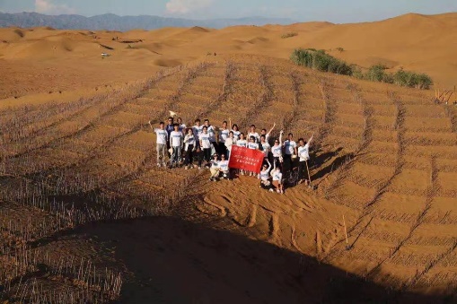 “直到风沙止步。”简短有力的一句话,深深扎根在学环境的刘智卓心中。2016年,刘智卓带领9个大一的同学从上海出发,坐了一天一夜的绿皮火车,又经过6小时的汽车颠簸,终于到达甘肃省武威市民勤县的大漠深处,开始了他们的第一次治沙之行。那一年,他们没有住宿的地方,就睡在沙漠边缘乡亲家里的地板上;没有治沙工具,就挨家挨户去借。当地人开始都觉得这群从城里来的、白白净净的大学生是“闹着玩”的,而刘智卓在之后的每个夏天都会准时出现。不仅如此,和他一起来的志愿者不断变多,在沙漠驻扎的时间也逐渐变长,大家齐心接力实现了更为长期的治沙行动。在七年的时间里,他从十个人的小队开始,逐步创立绿格公益团队,发展志愿者超千人,志愿者招募范围从上海交大拓展到全国80多所高校。如今,“交大林”开始在大漠扎根,“环境绿”已然在沙漠涌动,成为漫漫黄沙中的生机与希望。