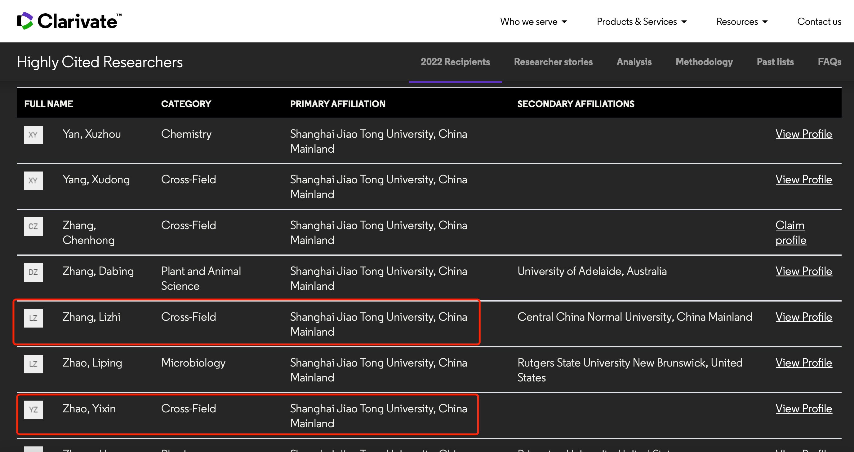 11月15日,科睿唯安发布2022年度全球“高被引科学家”名单,遴选全球高校、研究机构和商业组织中对所在研究领域具有重大和广泛影响的顶尖科学人才。来自全球69个国家和地区的6938名科学家入选2022年度名单,他们在过去十年对自然科学和社会科学的单个或多个学科产生了重要的学术影响力。