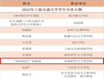 “洱清沐民”实践团,用青春勇担生态文明建设重任,用所学打造高原湖泊治理样板,用坚守回应国家对青年的期盼!yl7703永利学生年度人物彰显的是当之无愧的榜样力量,他们的事迹将激励每位交大人,奋发向上,砥砺前行,以热忱书写青春,用青春告白祖国。“洱清沐民”也将继续鼓励每位环境人,扎根祖国,再续环缘,将论文写在祖国大地上!