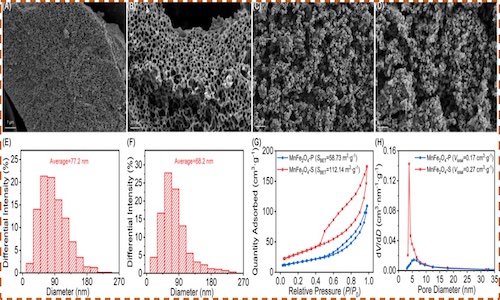 尖晶石铁氧体是典型的金属基材料,因其制备工艺简单、稳定性高、可磁分离等优点被认为是一类在芬顿反应中很有前景的活化剂。但尖晶石铁氧体普遍存在活性位点的颗粒团聚严重,分散性差,比表面积低的缺陷,这将导致活性位点暴露有限,传质效率较差。同时,采用传统的共沉淀法、水热法等方法很难制备具有多孔结构的尖晶石铁氧体。通常来说,模板法是制备多孔尖晶石铁氧体的一种可行方法。然而,低产率、有毒的模板清除剂、长合成时间等缺陷阻碍了其进一步应用。因此,需要开发一种绿色高效的多孔尖晶石铁氧体合成方法,并确保该铁氧体能够通过对NOM的筛分从而选择性地去除废水中的目标污染物,这也是推动非均相AOPs广泛应用的关键问题。