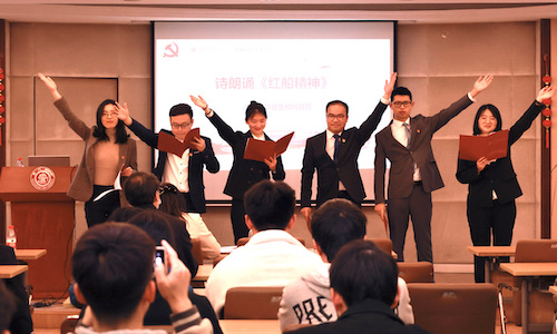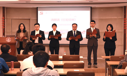接下来,毕业生党员带来了诗朗诵《红船精神》,满怀深情地讲述了中国共产党在国家风雨飘摇中诞生,共产党人带领人民建设伟大祖国和走向中华民族伟大复兴的百年波澜壮阔征程。坚定了永远跟党走,在新时代创造新辉煌的理想信念。