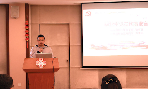 在毕业生党员代表发言环节,2020级硕士毕业生党员徐宇博以“选择”和“坚持”两个关键词,讲述了自己在交大入党和成长蜕变的经历。深受孔海南老师多年扎根西南边陲、投身于洱海生态保卫战事迹的影响,他表示将牢记学校和学院的殷殷嘱托,努力学习、增强本领、不辱使命,扎根祖国东北基层成为一名选调生,将交大环境人的青春火种播撒在新时代新征程的广阔天地。