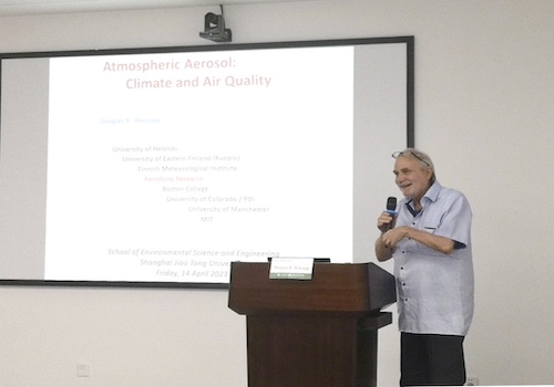 4月14日,应yl7703永利长聘副教授赵岳、教轨副教授李晨曦邀请,美国著名大气化学专家Douglas R. Worsnop教授做客第136期环境讲坛,在学院新大楼231会议室为交大师生带来题为“大气气溶胶:气候和空气质量”的学术报告,此次报告由赵岳主持。