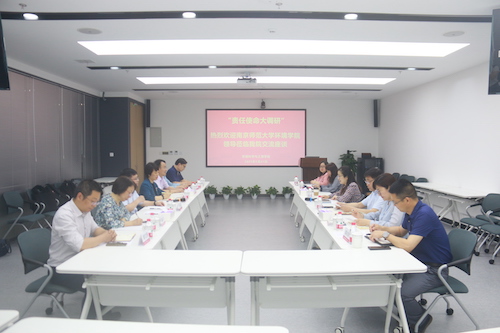 双方围绕调研内容展开研讨,并就教学教研、学科发展、国际化、学生工作、基地平台建设等问题进行细致交流,达成了“责任使命大调研”的良好成效。杨燕一行还参观了绿色环境楼。