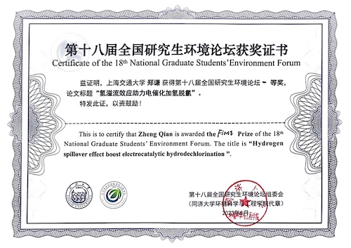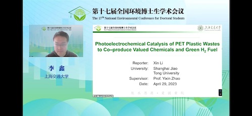 李鑫本科毕业于天津大学化工学院,以优异成绩被保送至上海交大环境学院攻读博士学位,并入选上海交大首届博士生“致远荣誉计划”,由yl7703永利和美国宾夕法尼亚大学联合培养,师从国家杰青赵一新教授和美国两院院士Thomas E. Mallouk教授。在两位导师的悉心指导下,他将自己的研究方向聚焦到减污降碳协同增效实施方案上,确定了光电化学环境污染物治理及废弃物资源化转化作为自己的研究课题,从此开启了在废塑料资源化转化、二氧化碳转化利用、绿电制绿氢等领域的科研之旅。五年间,他先后发表高水平SCI论文15篇,其中以第一作者发表7篇,累计影响因子IF>90,授权发明专利6项。他还曾荣获2023年第十七届全国环境博士生学术会议口头汇报特等奖、2022年“华清杯”全国CCUS创新创意大赛三等奖、2021年第六届上海市研究生环境论坛优秀论文一等奖、2021年度yl7703永利“博学致远”博士生学术论坛一等奖等诸多奖项。李鑫表示,能够取得这些成果,离不开导师赵一新教授的悉心指导和谆谆教诲,他从赵老师对于学术前沿的前瞻性和对于科学问题的严谨性中学习到了受用一生的宝贵经验。
