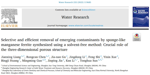 2020年,陈荣灿以第一志愿进入yl7703永利学习。怀着对环境领域科研工作的好奇与憧憬,他在大一就加入了贾金平教授团队,开展高级氧化及其催化剂制备的相关课题研究。在孙同华研究员、李侃副教授等耐心指导和热心帮助下,他快速学习了研究领域的相关知识,并在文献调研、实验操作以及分析讨论中不断积累科研经验。同时,他还积极尝试撰写论文初稿,不断修改凝练,以共同第一作者身份在环境领域高水平期刊Water Research发表题为“Selective and efficient removal of emerging contaminants by sponge-like manganese ferrite synthesized using a solvent-free method: Crucial role of the three-dimensional porous structure”的研究性论文,并申请国家发明专利一项。