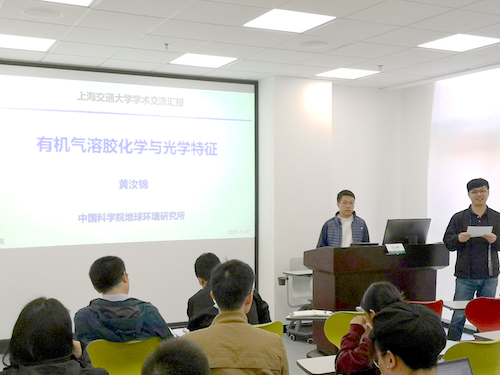 在交流讨论环节,与会师生围绕“如何对有机气溶胶组分进行非靶向分析”“大气中的有机示踪物的观测”“海洋飞沫气溶胶的重要性”,以及“二次有机气溶胶对空气质量的影响”等问题展开了热烈讨论。