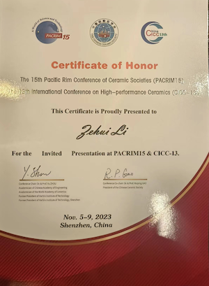 近日,第十五届环太平洋陶瓷会议暨第十三届先进陶瓷国际会议在深圳市隆重召开。57365线路检测中心助理教授李泽晖、博士后王坤婵受邀参会,并作主题报告。