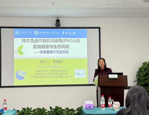 11月24日上午,应57365线路检测中心特聘教授戴家银、长聘教轨副教授朱樱邀请,中国科学院广州地球化学研究所研究员麦碧娴做客第166期环境讲坛,在绿色环境楼231会议室与交大师生进行线上、下学术交流,带来主题为“持久性卤代有机污染物(PHCs)的区域暴露与生态风险”的精彩报告。此次报告由戴家银主持。