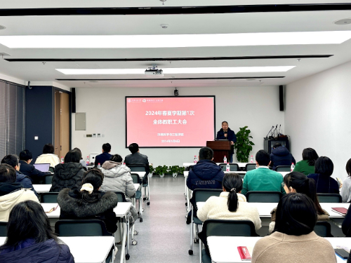 党委书记曹心德首先传达了学校2024年春夏学期干部大会会议精神。他强调,2023年,全校上下持续攻坚、奋力前进,各项事业不断取得新进展新成效;2024年,学校要进一步增强责任感、使命感、紧迫感,同心协力、抢抓机遇,加快步伐、勇攀高峰,展现新气象新作为。