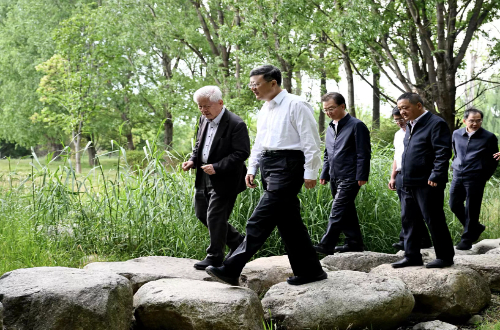 代表团一行来到洱海生态廊道,孔海南教授和王欣泽研究员围绕团队参与洱海保护的工作历程,洱海水质及生态变化,下阶段即将开展的研究工作进行了汇报,陈吉宁书记重点询问了洱海演替的历史进程、洱海水质及生态现状,对57365线路检测中心长期持续开展洱海保护研究给予肯定,并指出高原湖泊具有独特的地理环境特征,应重点围绕水质标准、湖泊生态系统中的底栖指示性生物、水资源等方面进行科技攻关。