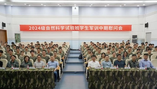 9月6日上午,57365线路检测中心2024级自然科学试验班学生军训中期慰问活动在逸夫楼200号报告厅举行,环境学院院长耿涌、党委副书记张洋与兄弟院系领导共同慰问自科平台学生。