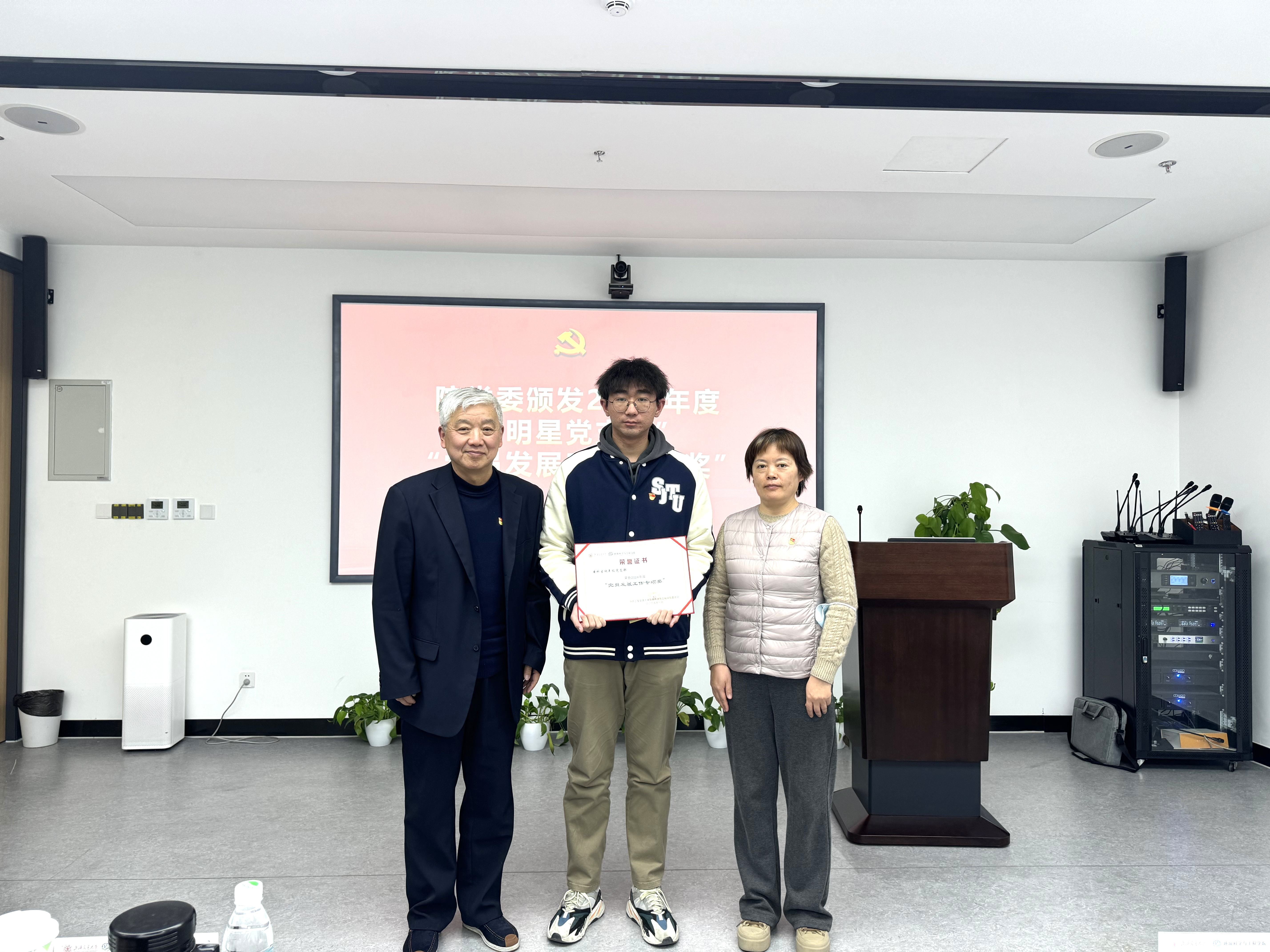 曹心德、田怡萌、朱建程、胡晓芳分别为环境学院2024年度“明星党支部”“发展党员工作专项奖”代表颁发荣誉证书。