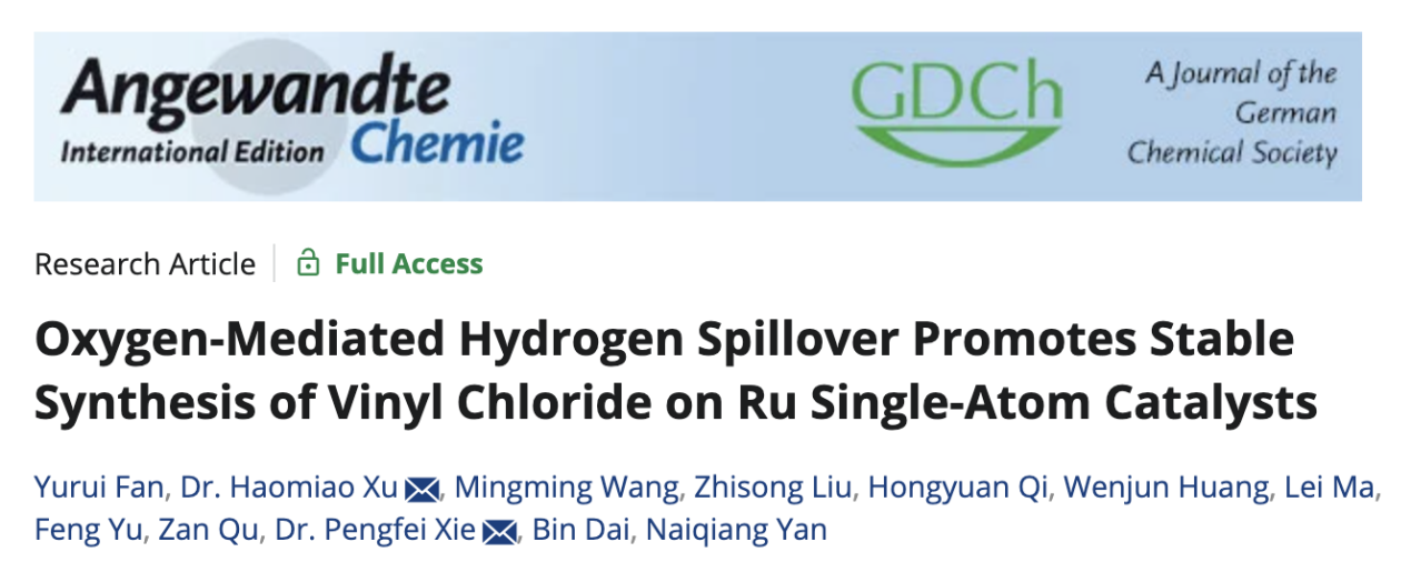 环院智慧| 徐浩淼副教授等在Angew. Chem.lnt. Ed.发文报道无汞催化剂(Ru-SAC)合成氯乙烯的氢溢流增强作用