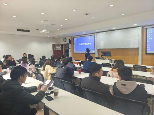 张蓉代表学院介绍了工程管理专业学位论文答辩的具体要求和时间安排,提醒即将参加答辩的同学提前做好各项准备工作。她表示学院将全力为每位同学提供支持,并祝愿同学们能够顺利毕业。