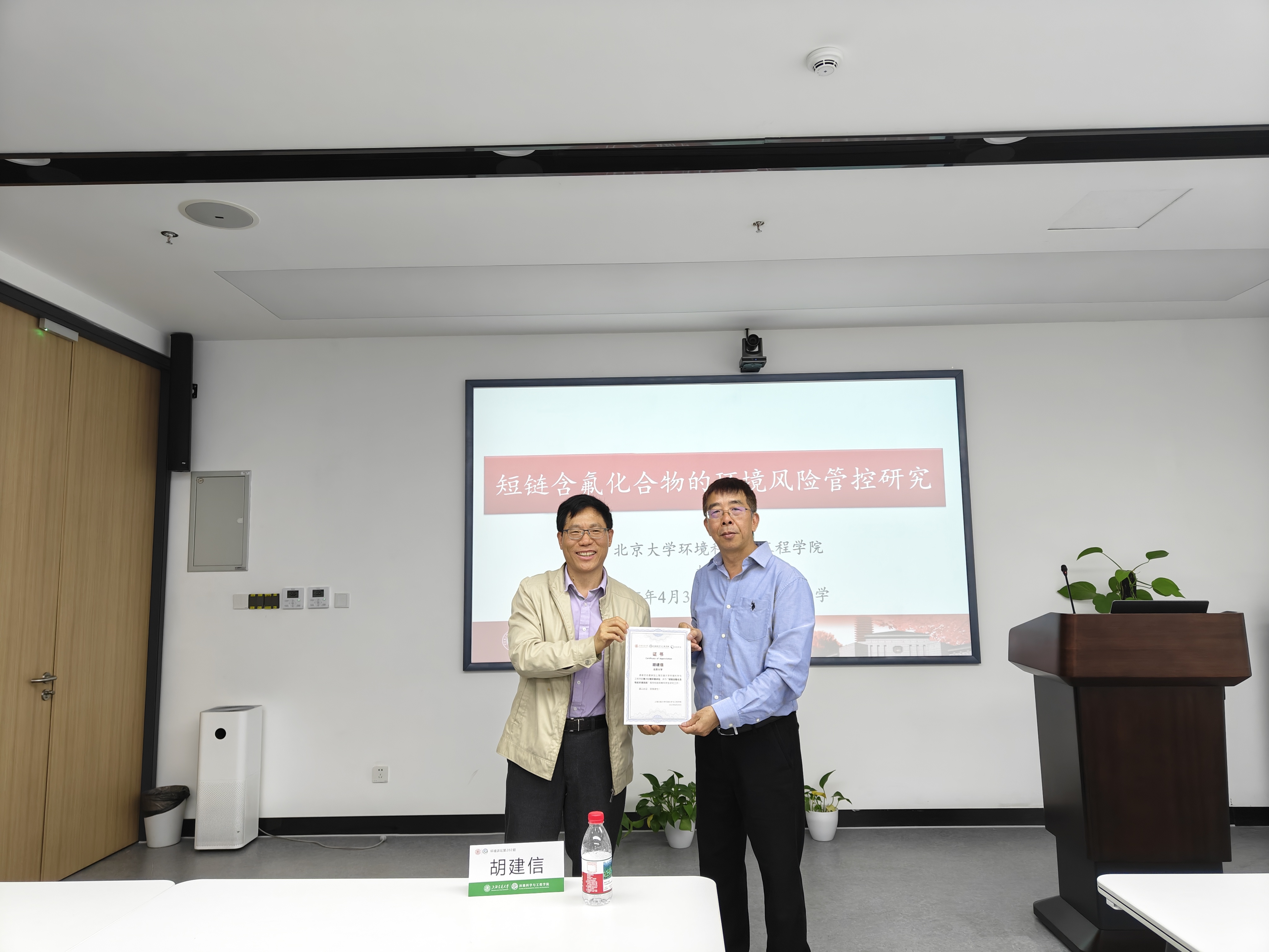 近日,应yl7703永利特聘教授戴家银、长聘副教授潘奕陶邀请,北京大学yl7703永利胡建信教授做客第202期环境讲坛,在绿色环境楼231会议室与交大师生进行线下学术交流,带来题为“短链含氟化合物的环境风险”的精彩报告。此次报告由潘奕陶主持。