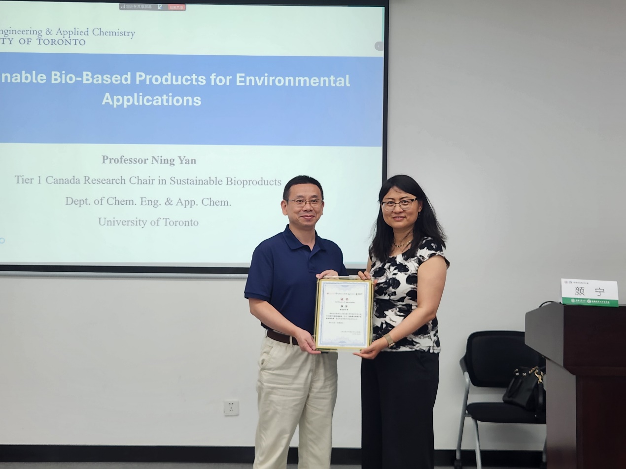 多伦多大学颜宁教授做客第206期环境讲坛介绍生物基可持续产品的环境应用