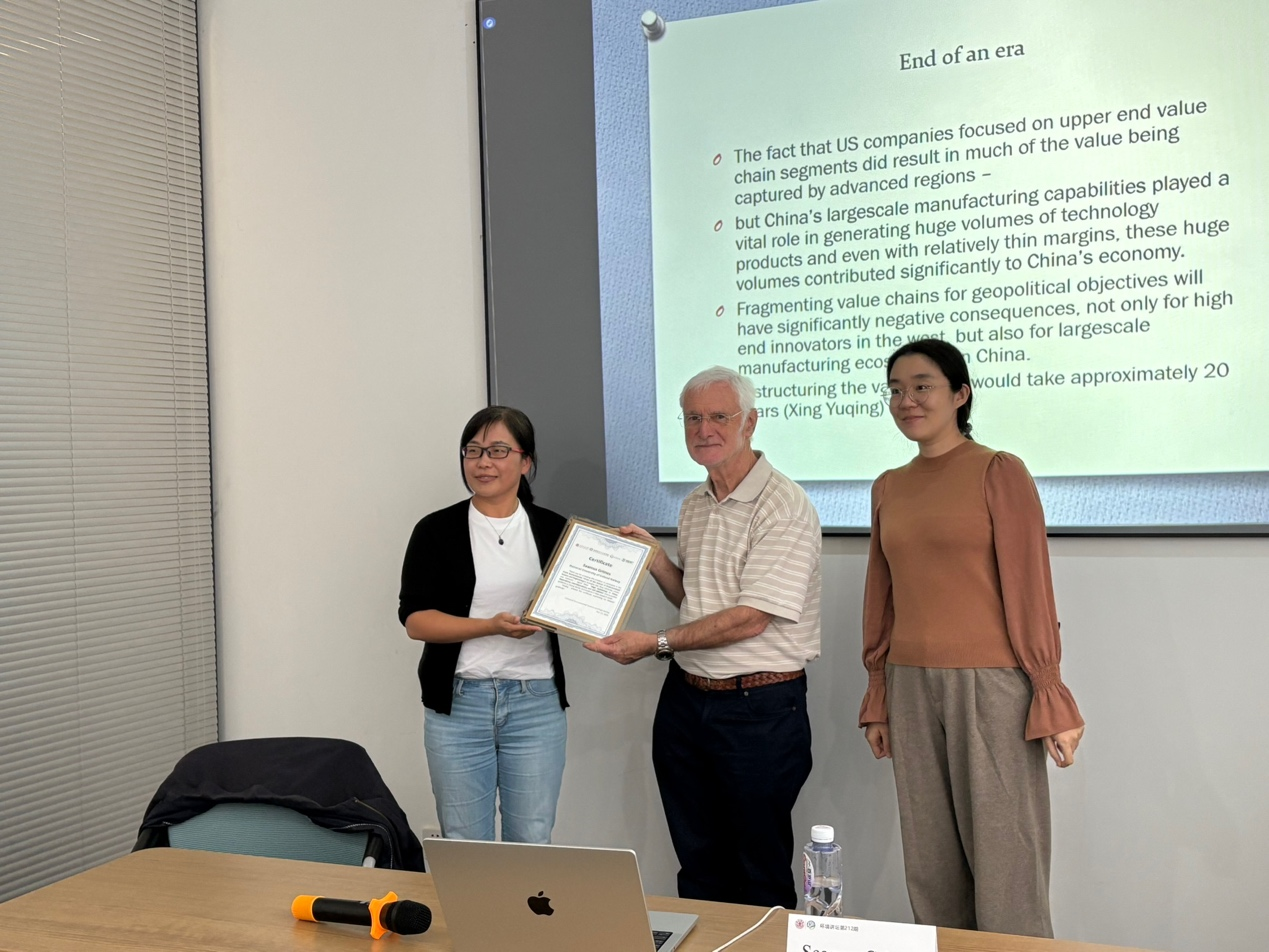 环境讲坛|爱尔兰戈尔大学Seamus Grimes教授做客第212期环境讲坛介绍全球高科技价值链重构背景下中国高科技产业演进路径