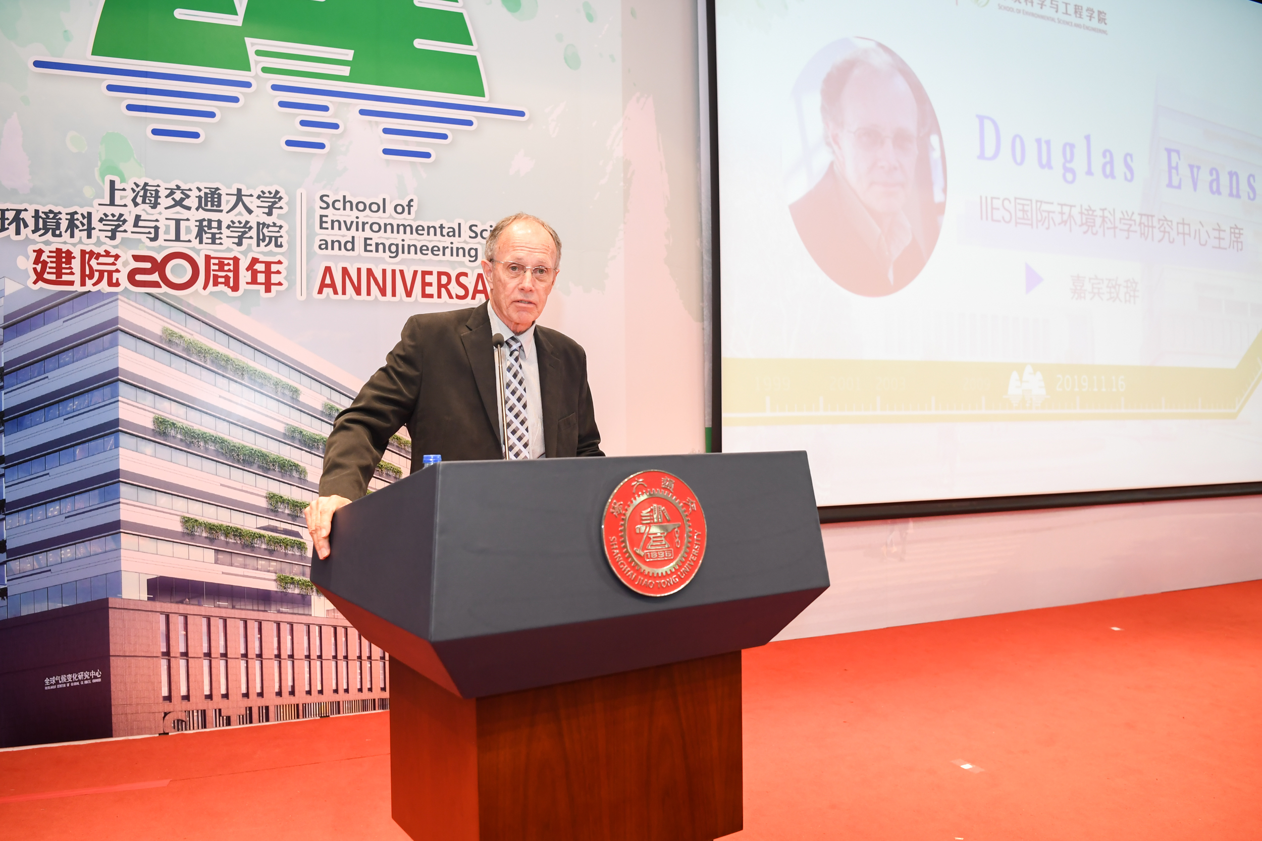 随后,国内兄弟院系代表、浙江大学农业生命环境学部主任朱利中院士发表致辞。朱利中表示,衷心希望交大环境学院能与兄弟院校的友谊越来越深厚,积极推进相近学科、专业之间的资源共享、优势互补,共谋发展,为建设世界一流的环境学科并肩奋斗。伦敦大学学院环境学院院长Raimund Bleischwitz与国际环境科学研究中心主席 Douglas Evans代表海外合作单位致辞,他们肯定了环境学院在国际化科研合作及办学项目的发展,同时也希望学院在环境领域研究的国际化发展道路上不断取得新成绩。