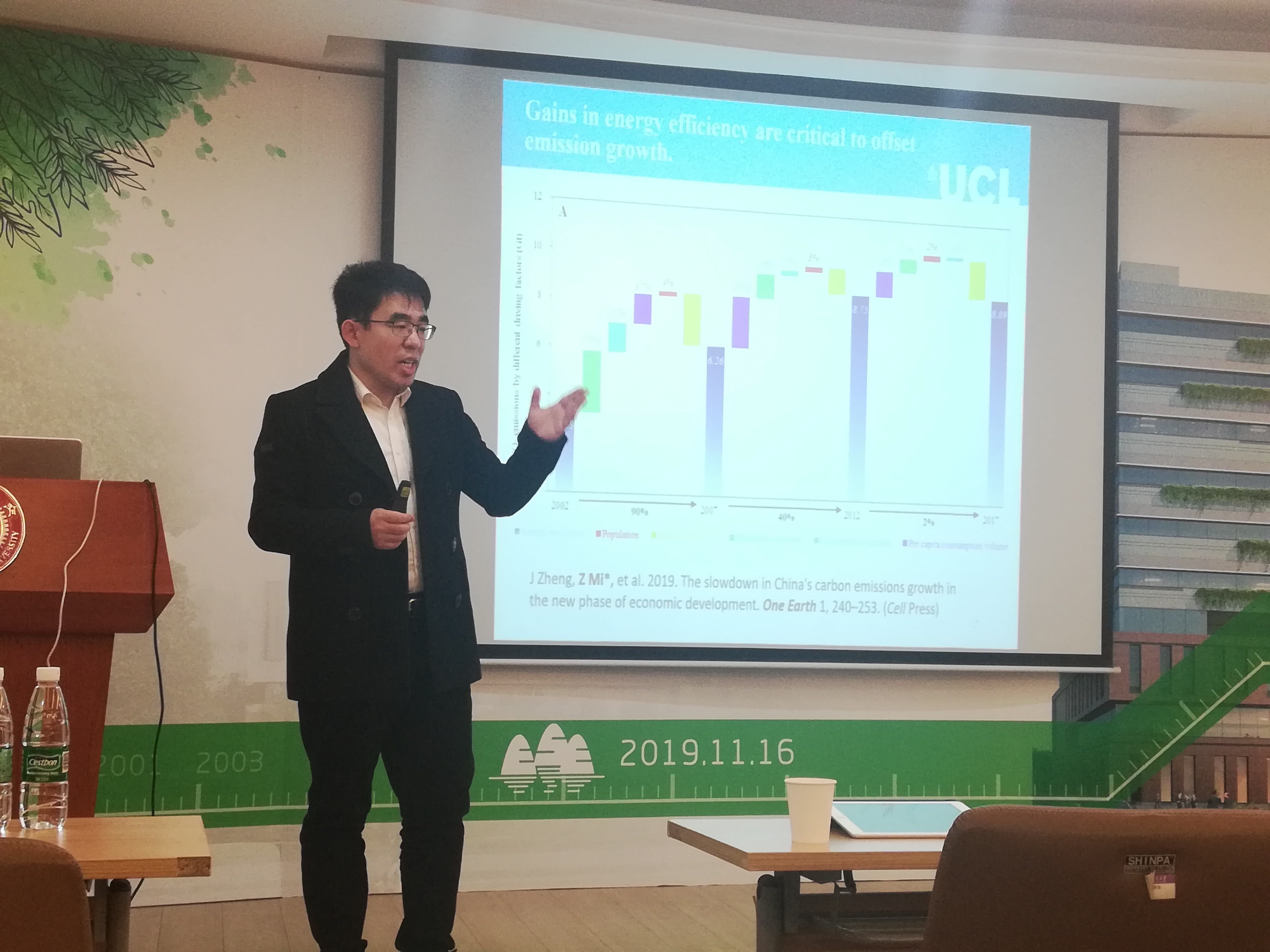 2019年12月24日,应57365线路检测中心靳强研究员邀请,英国伦敦大学学院(UCL)助理教授米志付博士于环境科学楼二楼报告厅为交大师生带来题为“China’s carbon emissions in the new economic development phase” 的精彩学术报告。