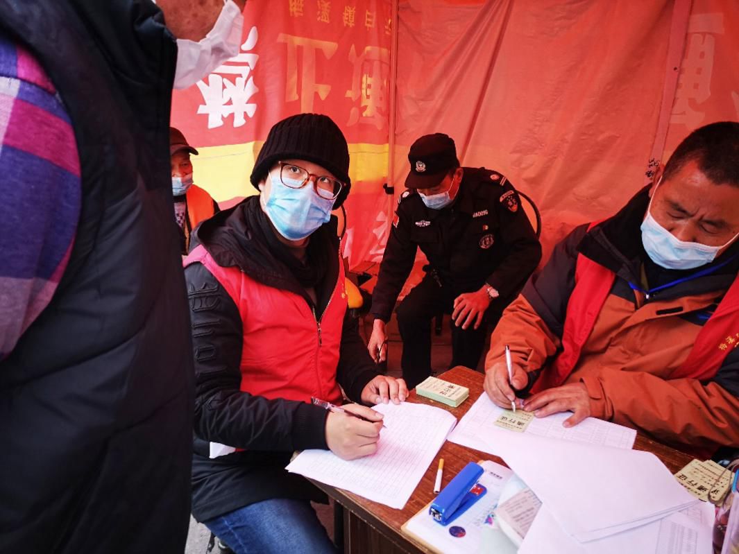 敲门、等住户开门、说:“你好,我们是社区的工作人员,现在为了防控疫情,我们需要对您家里的人员情况做一个了解。”、“请问您最近有离开过安吉吗?”、“请问您近期有和湖北地区人员接触过吗?”成为这几天中我们条件反射般的工作流程。