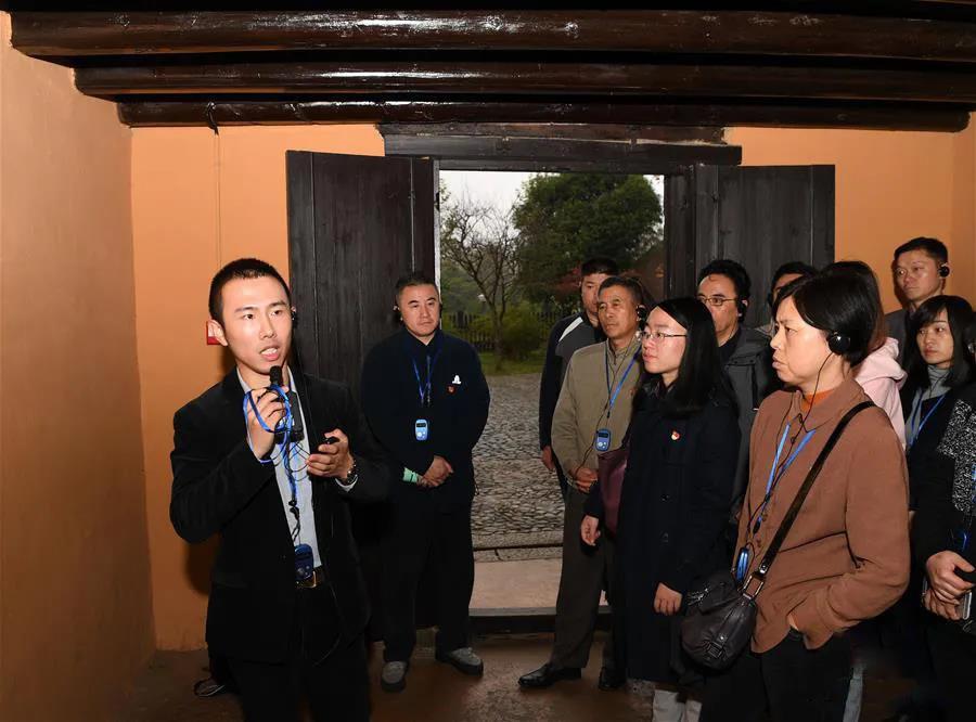 2017年11月15日,毛秉华的孙子毛浩夫在井冈山茨坪革命旧址群的教学点为参加培训的学员进行现场教学。