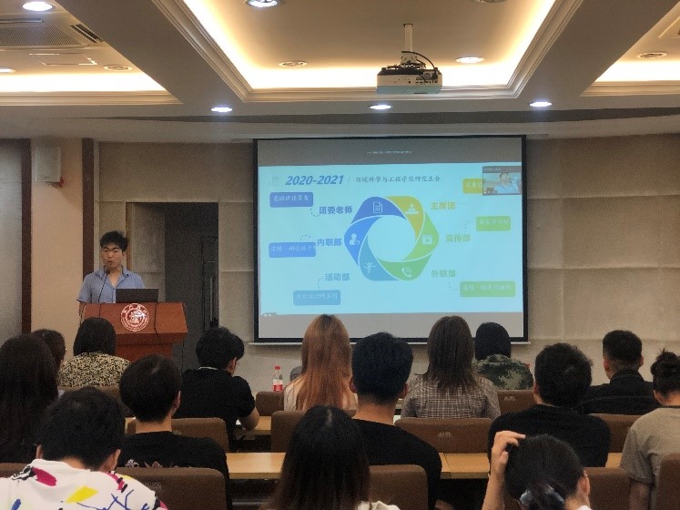 在庄严的国歌声中,大会拉开了帷幕。首先,胡薇薇代表学院致辞,对过去一年环境学院研究生会的学生工作并给予了充分肯定,并对研会成员一年来的工作表示感谢。她向同学们提出三点期望和要求。一是勤学习、勤思考,在科研方面积极实践探索,勇攀高峰,以优秀的科研成果助力学院的发展;二是敢于正视困难,勇于突破创新。三是要坚定理想信念,紧扣时代脉搏,立身长远发展,坚定成为社会主义和谐社会的拥护者和开拓者,为祖国的绿水青山事业做出贡献。最后,她鼓励同学们立足新时代,传承交大人的家国情怀和责任担当,认真落实上级的部署工作,为学院建设添砖加瓦,成长为对国家发展和人类社会的进步有贡献的人!