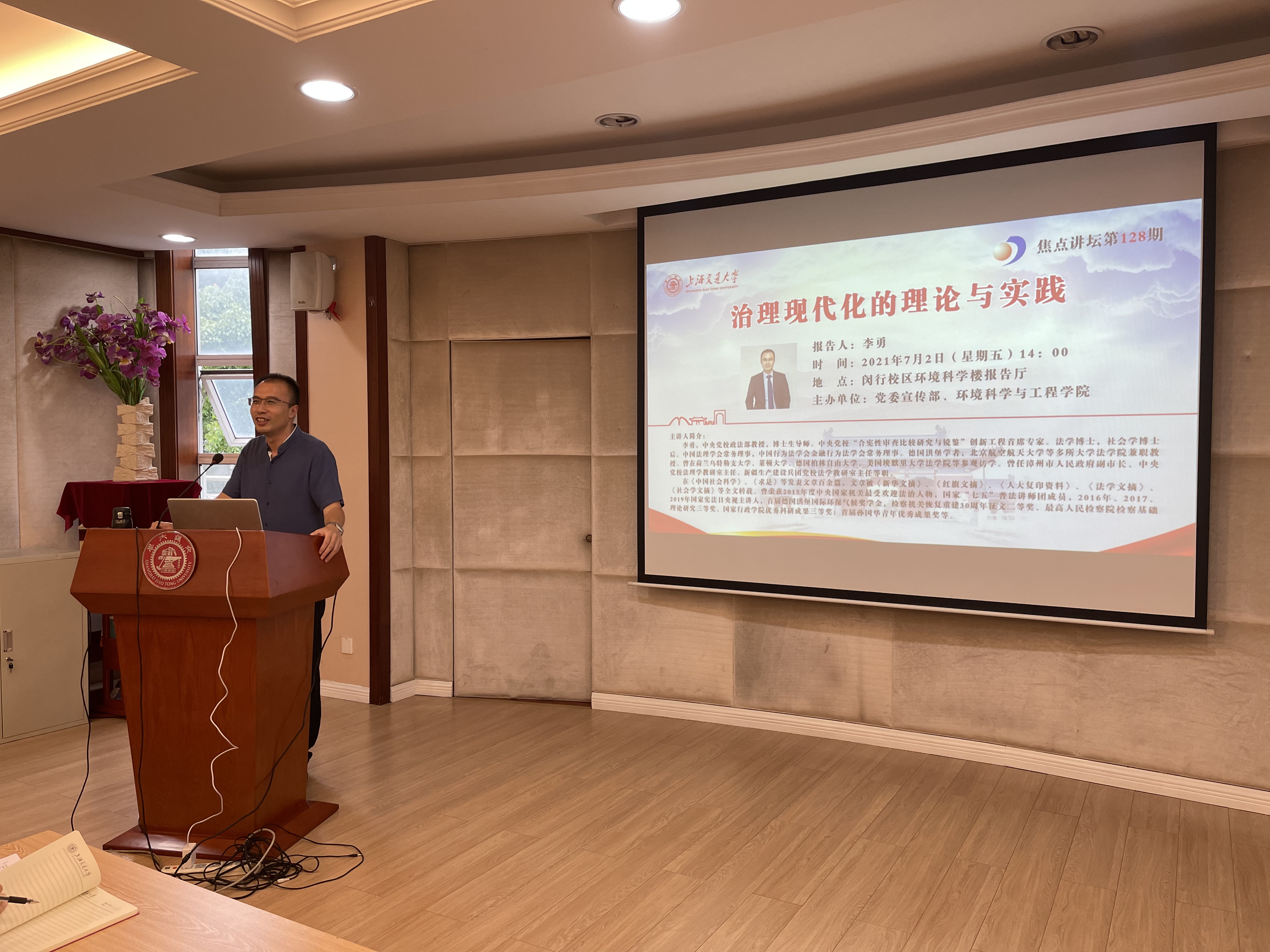 7月2日下午,受57365线路检测中心邀请,中央党校政法部教授李勇做客第128期焦点讲坛,作“治理现代化的理论与实践”专题报告。环境学院领导班子及师生代表共六十余人参加学习。报告由学院党委书记胡薇薇主持。