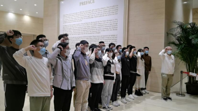 接着,大家来到中共一大会址和纪念馆,回顾百年党史。百年前10多位热血志士汇聚于此,宣告成立中国共产党,在历史上画下了浓墨重彩的一笔。纪念馆中的《伟大的开端》雕塑,13位代表步伐坚定地迈出石库门,象征着中国共产党在这里诞生,并一步一步带领中华儿女书写新的篇章。循着时间脉络,大家从建党时期一件件珍贵文物、一张张历史照片和一个个仿真场景前走过,不断领悟着习近平总书记在庆祝中国共产党成立100周年大会讲话中所总结的伟大建党精神:坚持真理、坚守理想,践行初心、担当使命,不怕牺牲、英勇斗争,对党忠诚、不负人民。