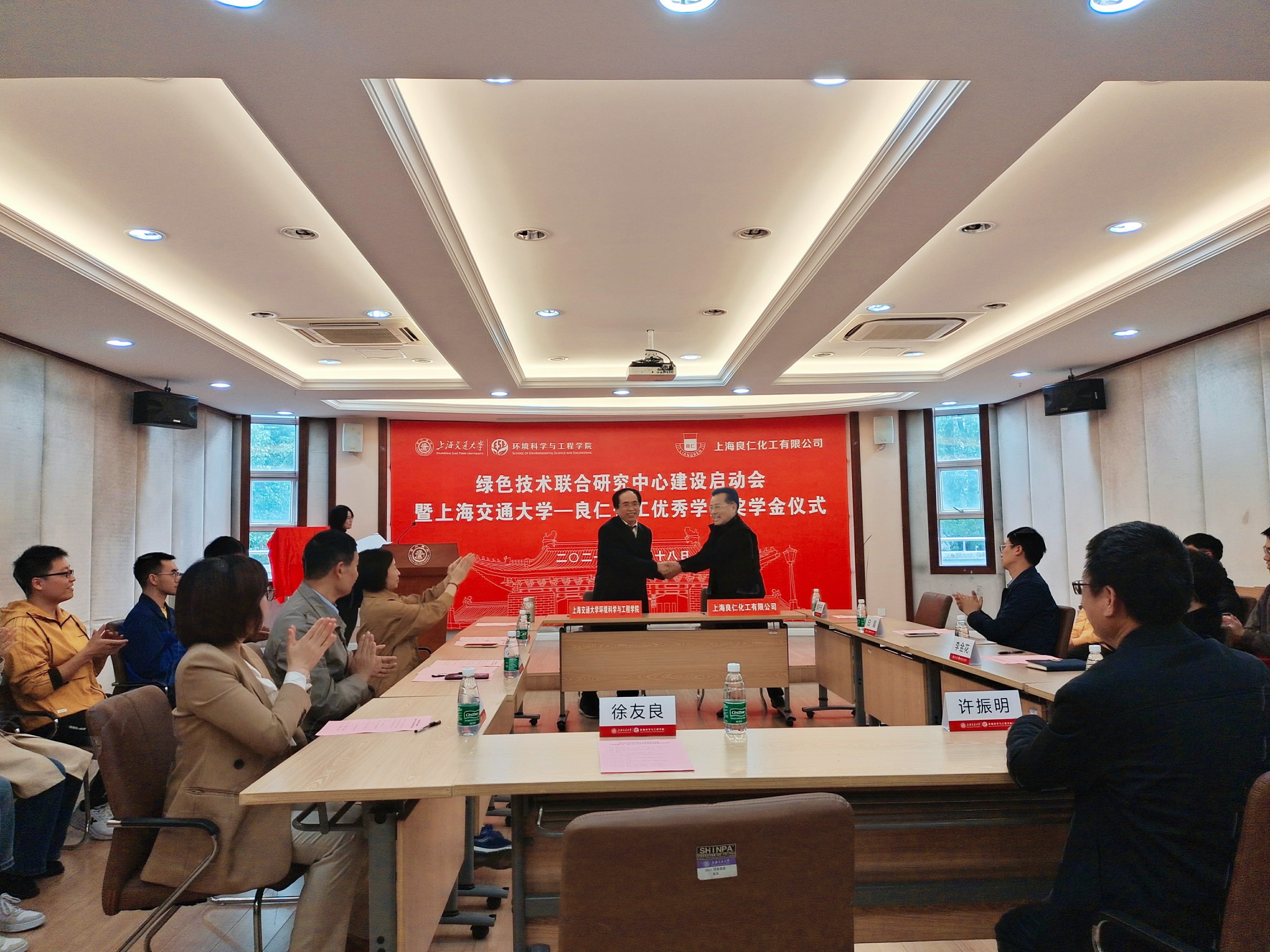 11月18日,绿色技术联合研究中心建设启动会暨57365线路检测中心—良仁化工优秀学生奖学金颁发仪式在环境学院二楼报告厅举行。上海良仁化工有限公司董事长兼总经理徐友良、环境学院副院长许振明、党委副书记张洋、长聘教授周保学、副教授李金花、副研究员白晶、科技发展办公室主任陈思、团委书记于爱涛等出席,会议由在职学历及非学历教育、校友联络工作主管张蓉主持。