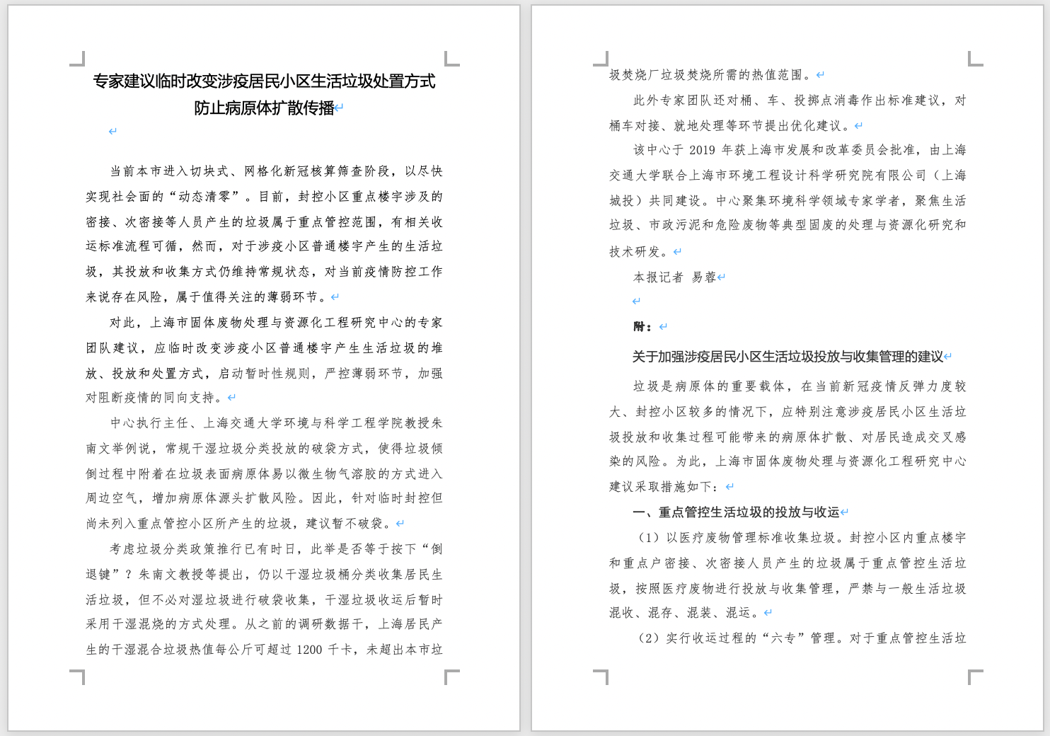 上海市固体废物处理与资源化工程研究中心执行主任、环境学院教授朱南文针对如何临时改变涉疫居民小区生活垃圾处置方式、防止病原体扩散传播向上海市相关管理部门撰写了内参,同时为《文汇报》撰文,对如何改进涉疫居民小区生活垃圾投放与收集管理提供专家建议。
