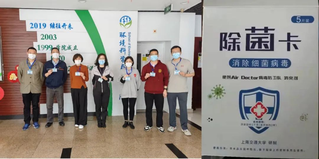 环境科学党支部书记申哲民将课题组研发的便携式除菌卡免费提供给学院。该除菌卡利用纳米缓释材料,针对传播力更强的变异毒株,为抗疫的师生提供防疫支持。