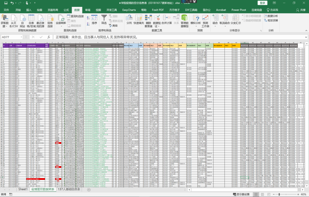 学院组织员马青担任社区志愿者,入党积极分子徐臻建立学院健康申报路径