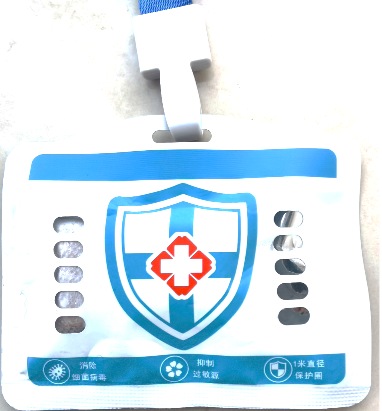 疫情期间,提升环境健康水平具有重要意义。针对传播力更强的变异毒株,为提高防护能力,申哲民课题组专门研发了这款便携Air Doctor 除菌卡。除菌卡利用纳米缓释材料,持续释放二氧化氯分子,灭活空气中的细菌和病毒。二氧化氯的有效成分可控释放,会迅速在人的上半身(脸、头颈和胸前)扩散开,距离人体半径50cm可以有效阻止细菌、病毒对人体的侵犯。卡片虽小,却成为战疫一线令人安心的“护身符”!目前该卡片已在环境学院和部分学校机关志愿者中发放试用。