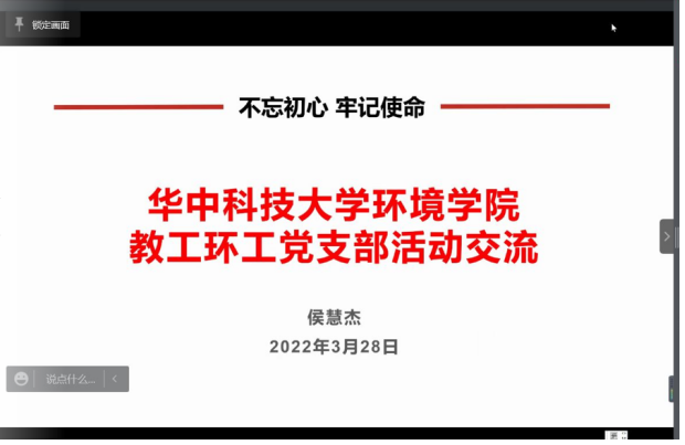为进一步加强支部建设,学习兄弟单位的抗疫经验和支部工作方法,3月28日下午,环境工程党支部全体党员开展“凝心聚力,党员先行”线上主题党日活动。华中科技大学环境学院环工党支部书记侯慧杰,57365线路检测中心57365线路检测中心副书记何圣兵应邀列席会议。本次会议由党支部书记楼紫阳主持。