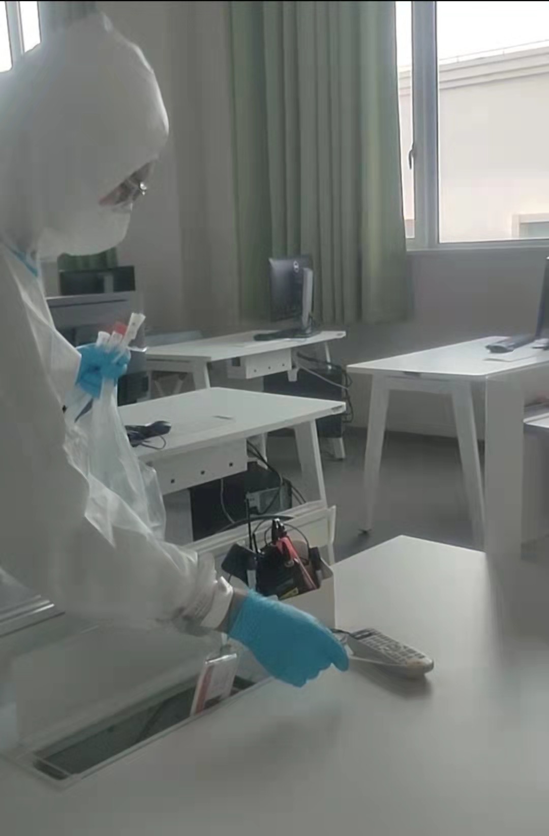 学院分析测试中心周伟丽老师主动请缨,发挥环境学科专业优势,组建校园环境核酸采样小分队,开展校内环境安全检测工作,用专业力量守护校园安全。她还担任办公楼楼长一职,负责组织楼内人员完成核酸检测、楼宇消杀、物资发放、数据录报等工作。在校内紧缺采样志愿者的关头,毅然选择留校坚守,继续奋战,坚持同心抗“疫”,共筑校园安全的“铜墙铁壁”。