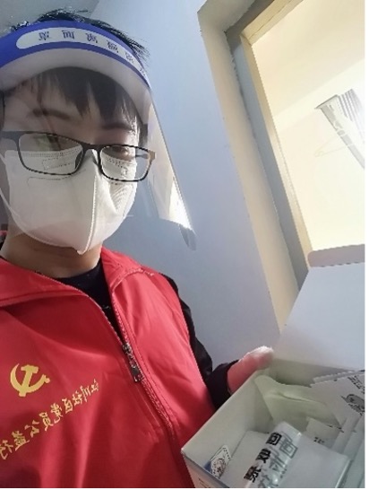 党员蔡俊刚结束校内抗疫工作返回家中,便立即转换角色,第一时间联系居委会,亮明党员身份,积极加入社区志愿者团队,主动承担起楼栋抗疫物资发放工作。他说:“不管是在校内还是校外,都与很多党员同志并肩战疫过,他们身上传递出的正能量、爱与责任使我深深感动,也激励我尽己所能去帮助他人。”