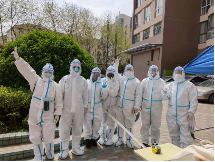 自居家办公以来,党支部委员李彭、党员孙珊珊、余凯锋积极响应号召,主动联系所在街道居民区党组织登记报到。有的同志由于承担核酸检测引导工作,天不亮就需要起床,甚至来不及吃早饭;有的同志所在社区无电梯设备,发放抗原、回收试剂只能依靠双腿;有的社区老人居多,为确保每一位居民都能正确使用自测盒,需要一遍又一遍讲解做抗原的注意事项,再挨家挨户回收、查看结果并做好记录。他们表示,防护衣密不透风,整个工作完成后常常全身湿透。但看到居民手里抗原全阴时,便由衷感到一切努力都是值得的!